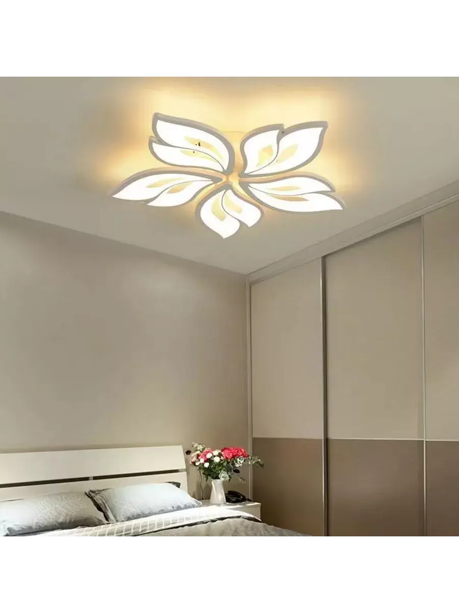 Светодиодная потолочная люстра в форме цветка и пятью листьями.Универсальный дизайн стильной люстры позволит вписать её в любой интерьер классический, скандинавский стиль или современный.
