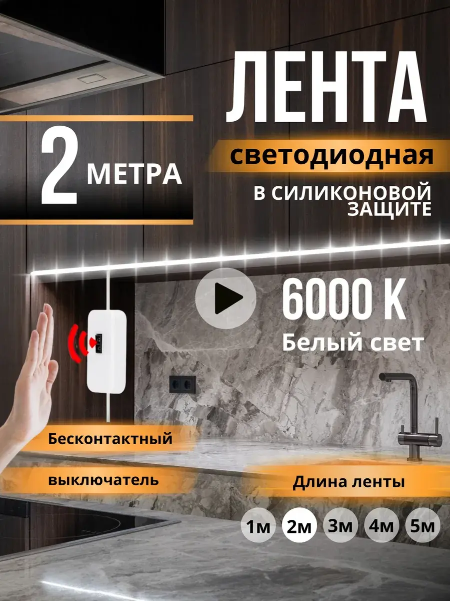 Светодиодная лента белого цвета 2 метра с бесконтактным выключателем - это изящная, сверкающая подсветка, идеальная для создания уюта в вашем доме. Надежная клеевая основа позволяет диодной ленте прочно закрепиться на стене, потолке, шкафу или зеркале без видимых следов при удалении. Светодиоды могут служить отличным решением для освещения кухни, комнаты или даже автомобиля. Мощность ленты 3 Вт/м, напряжение питания 5В, минимальная сила тока 2А.