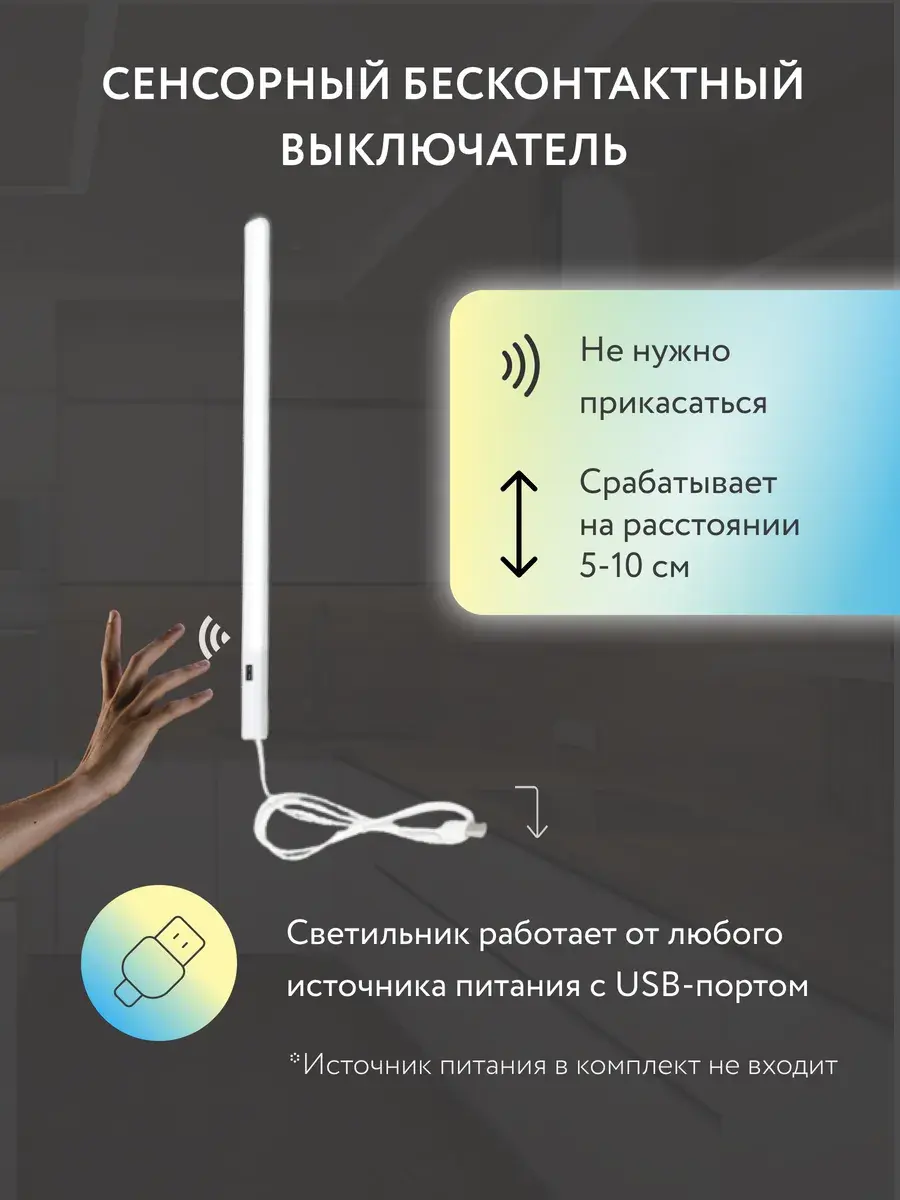 Линейный светодиодный (LED) светильник проводной, мощностью 7W, длиной 50 см с USB-подключением идеален для любого помещения в вашем доме или офисе. Этот светильник оснащен бесконтактным выключателем и сенсорным датчиком включения, обеспечивая удобство управления без необходимости физического контакта. Работает на напряжении 220 В и может быть подключен к USB-порту, что делает его универсальным для различных источников питания.